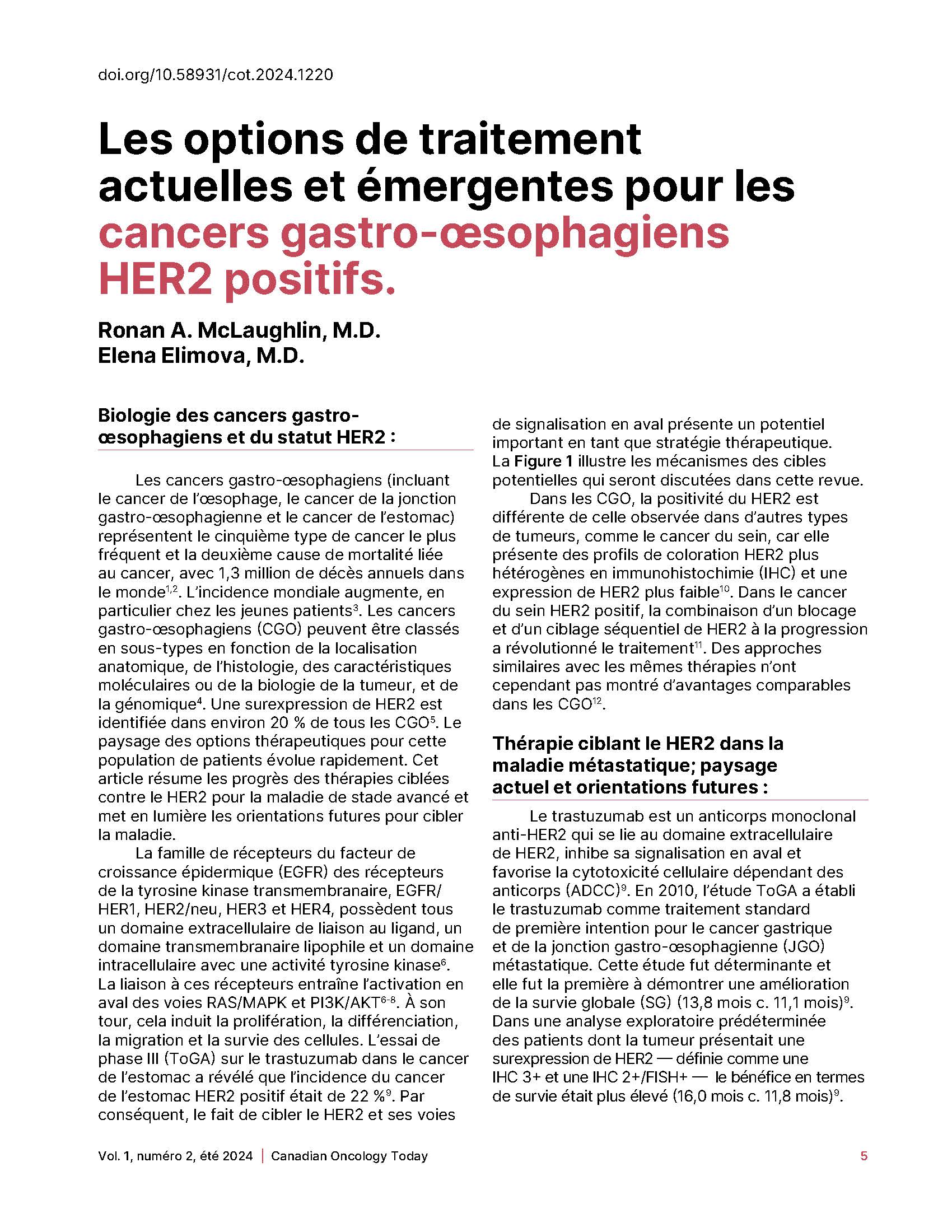 - Les options de traitement actuelles et émergentes pour les cancers gastro-œsophagiens HER2 positifs