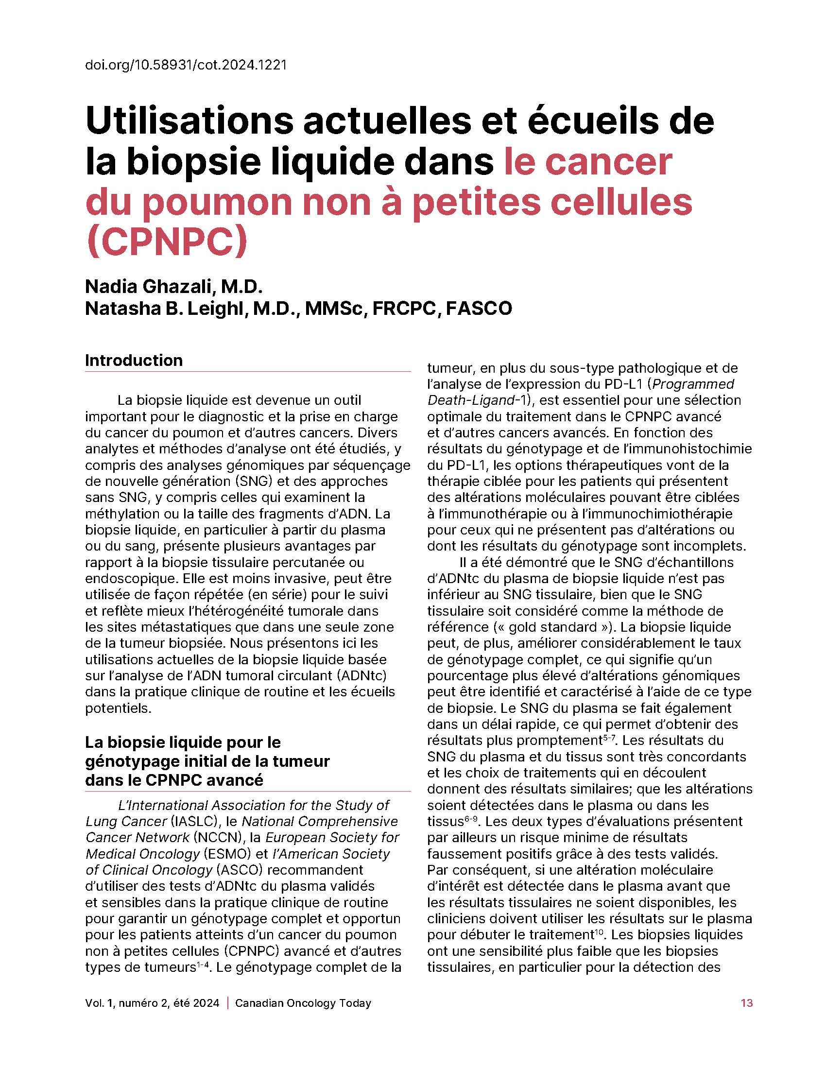 - Utilisations actuelles et écueils de la biopsie liquide dans le cancer du poumon non à petites cellules (CPNPC)