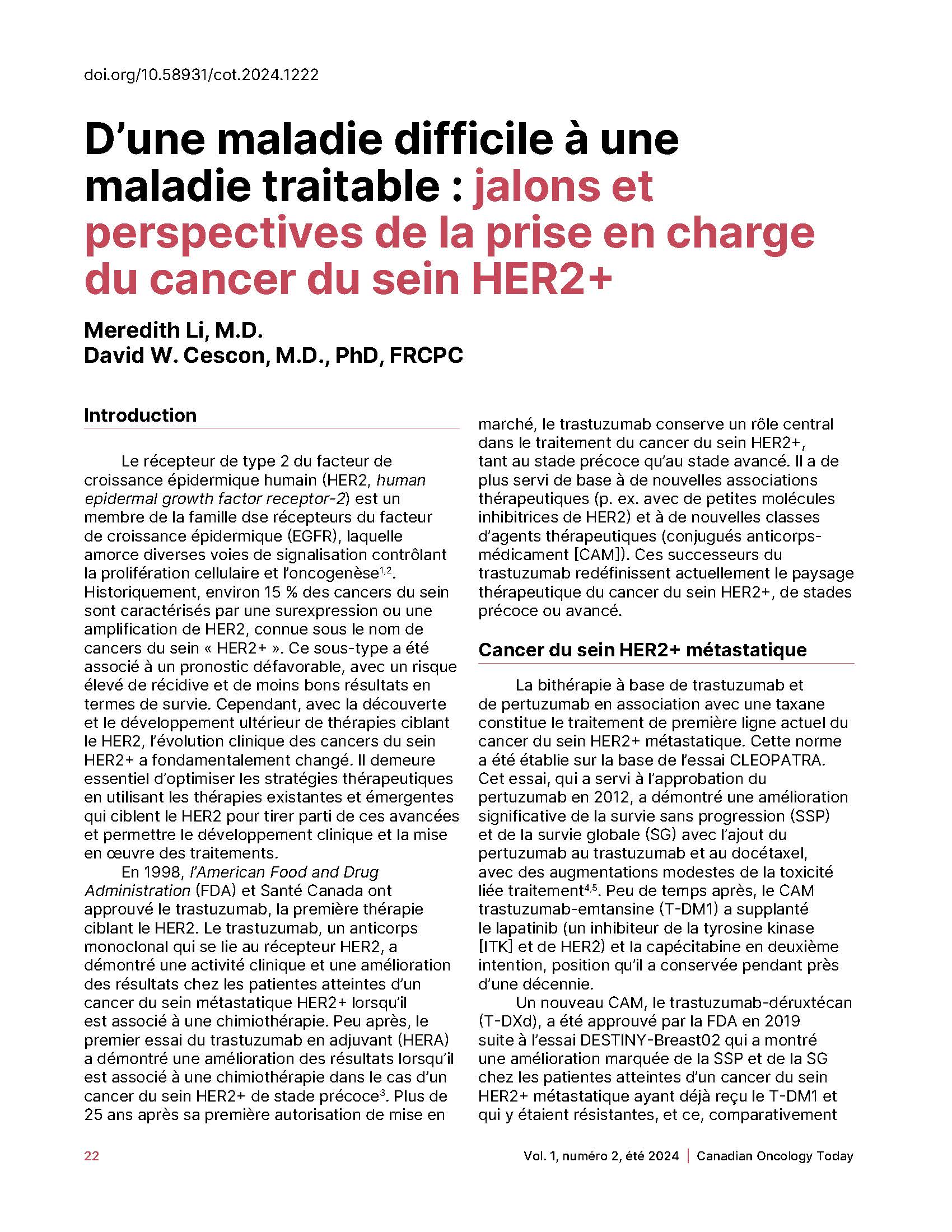 - D’une maladie difficile à une maladie traitable: jalons et perspectives de la prise en charge du cancer cancer du sein HER2+