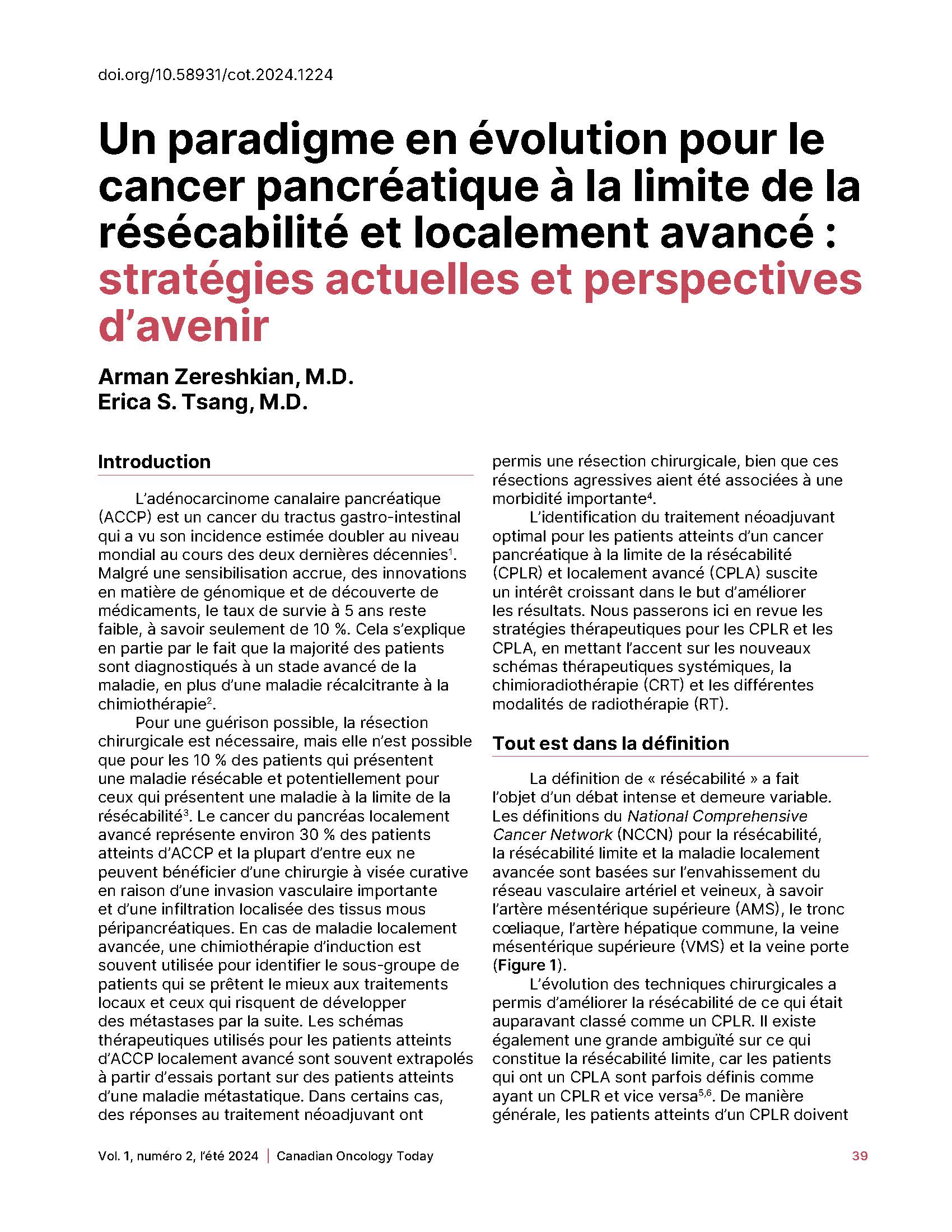 - Un paradigme en évolution pour le cancer pancréatique à la limite de la résécabilité et localement avancé : stratégies actuelles et perspectives d’avenir