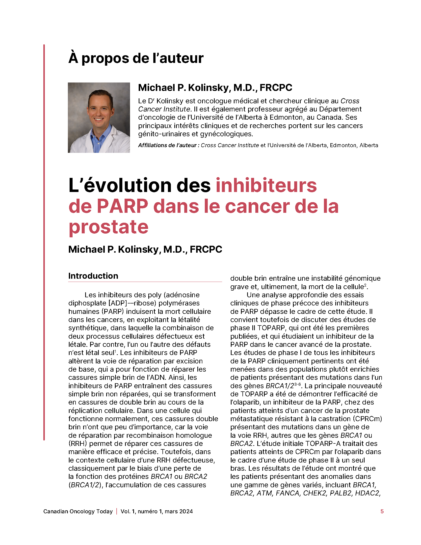 - L’évolution des inhibiteurs de PARP dans le cancer de la prostate