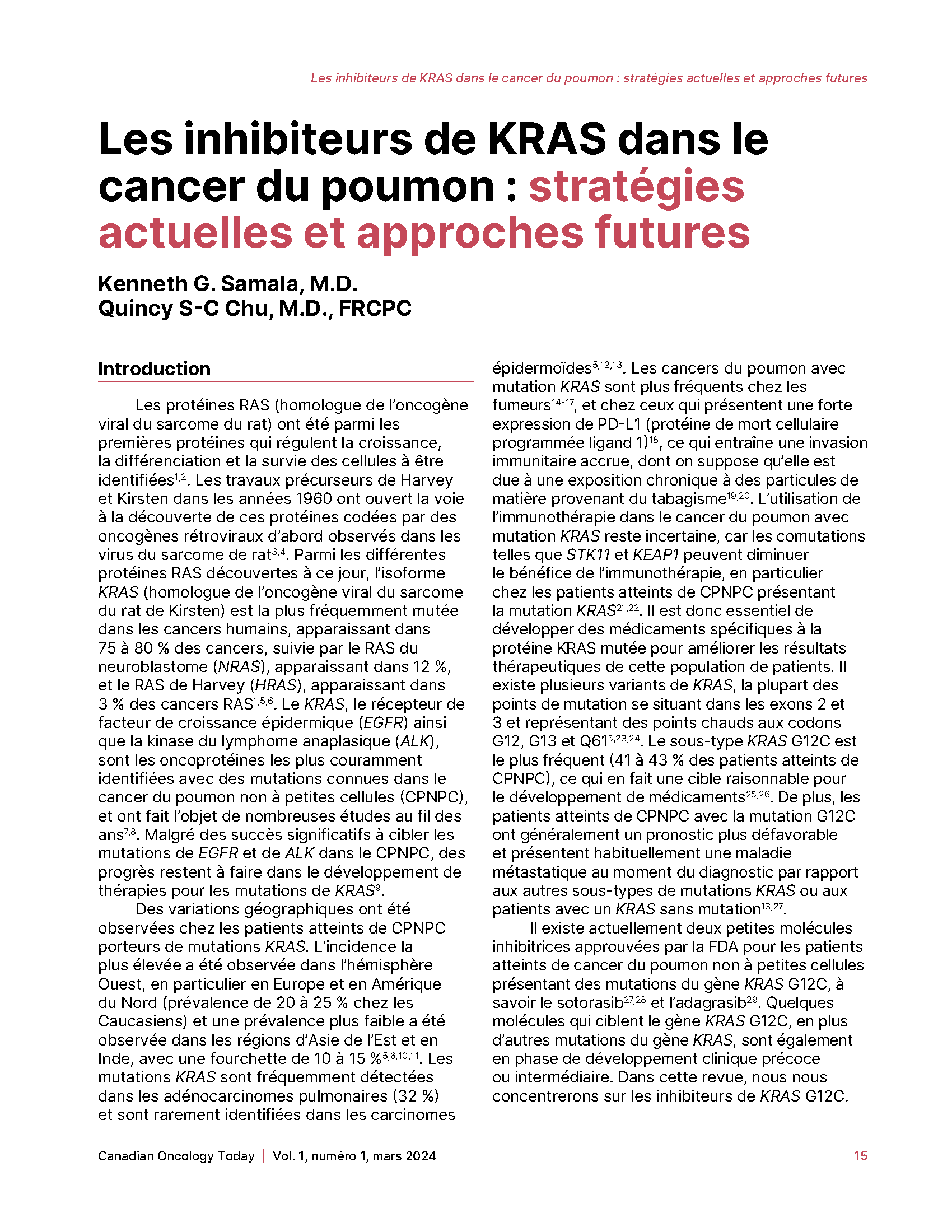 - Les inhibiteurs de KRAS dans le cancer du poumon : stratégies actuelles et approches futures