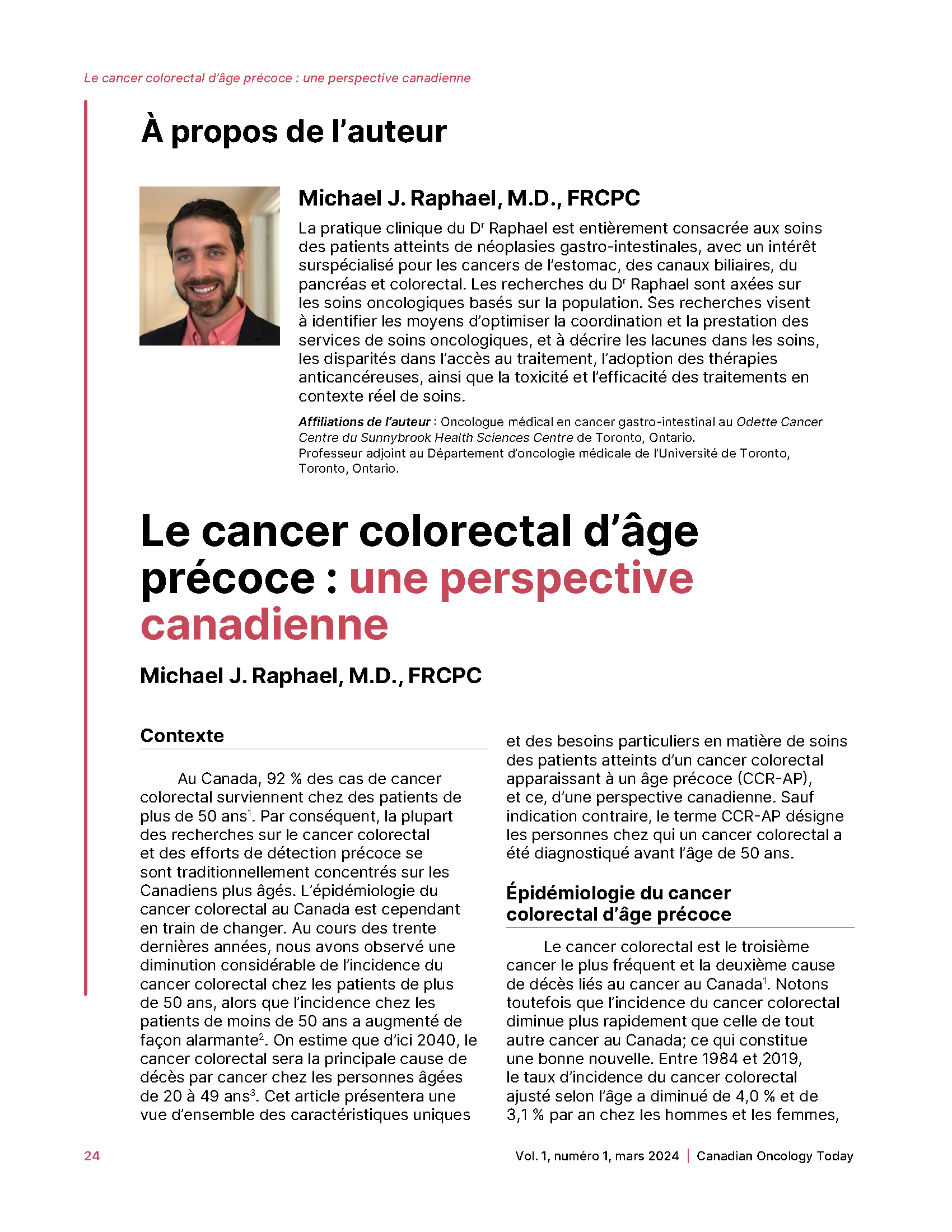 - Le cancer colorectal d’âge précoce : une perspective canadienne