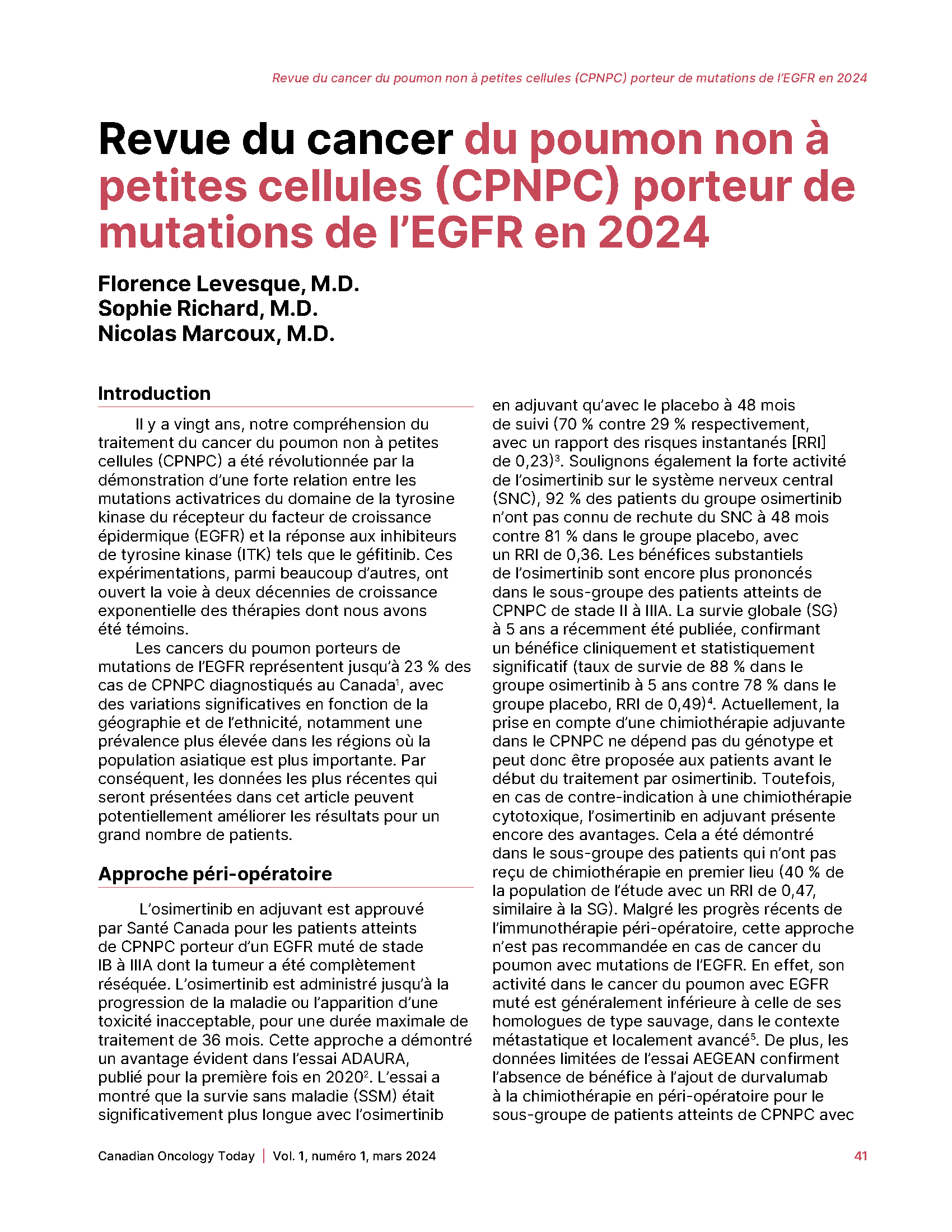 - Revue du cancer du poumon non à petites cellules (CPNPC) porteur de mutations de l’EGFR en 2024