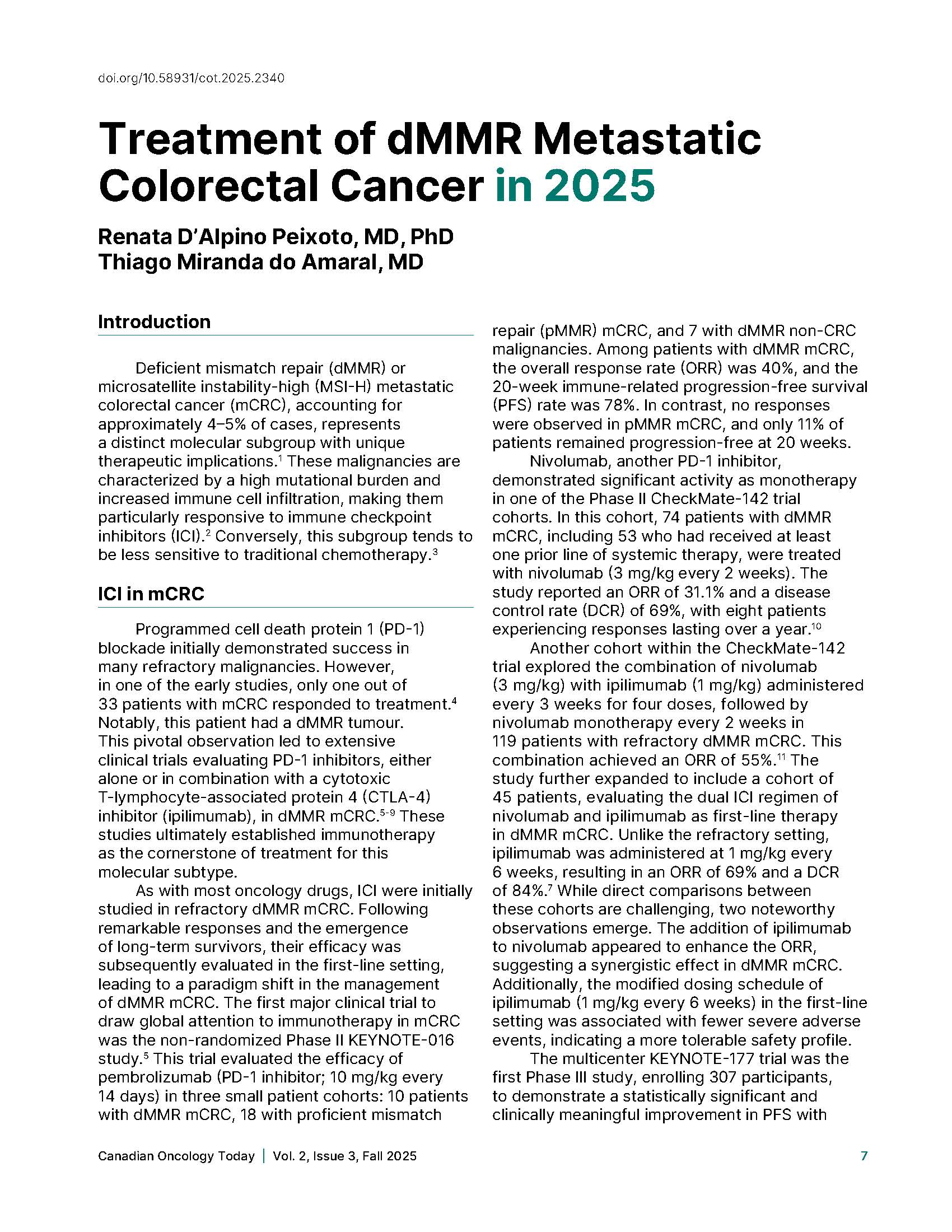 - Treatment of dMMR Metastatic Colorectal Cancer in 2025
