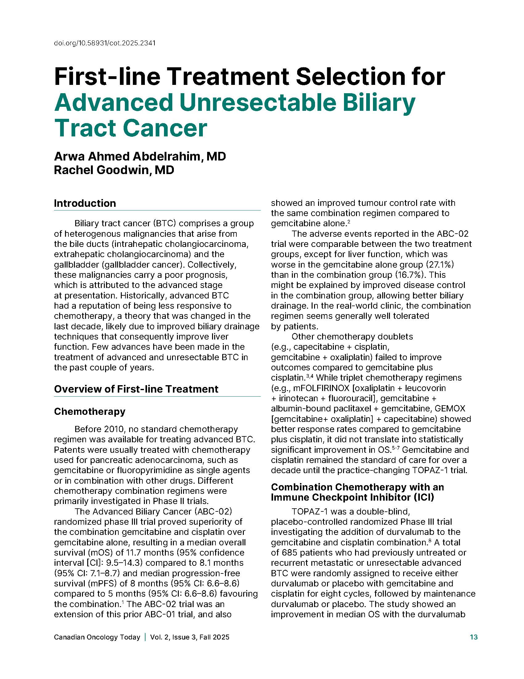 - First-line Treatment Selection for Advanced Unresectable Biliary Tract Cancer