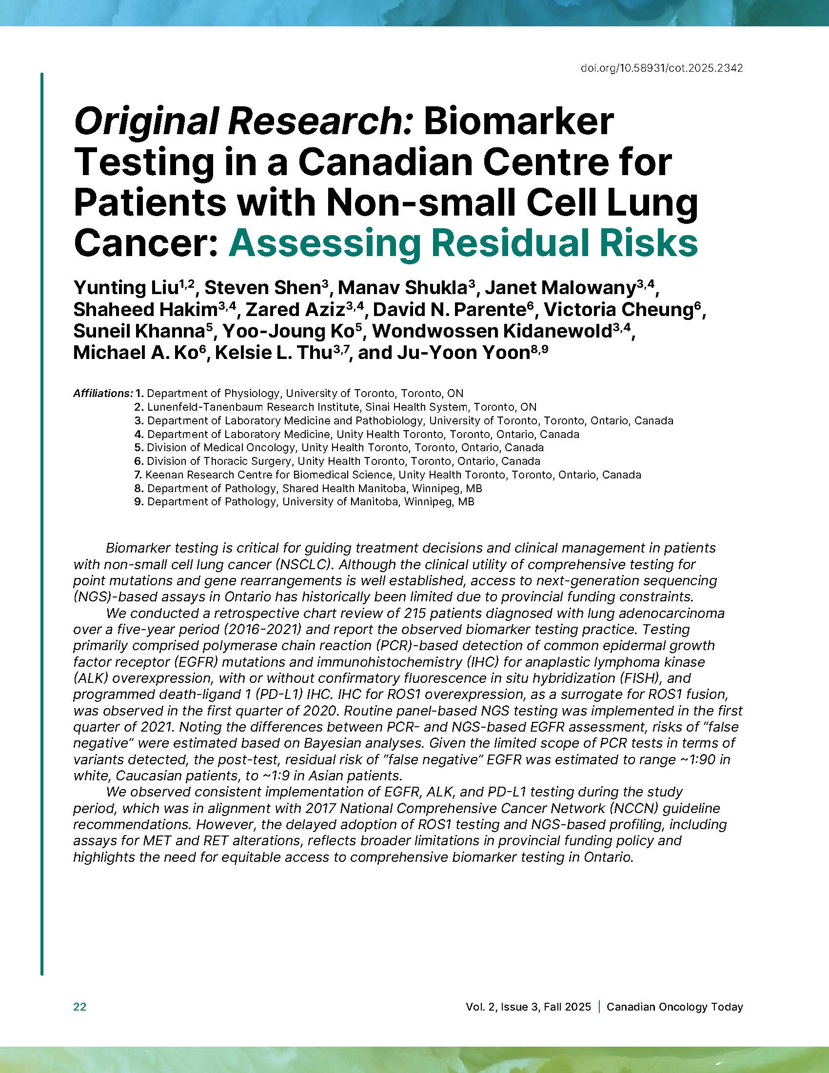 - Original Research: Biomarker Testing in a Canadian Centre for Patients with Non‑small Cell Lung Cancer: Assessing Residual Risks